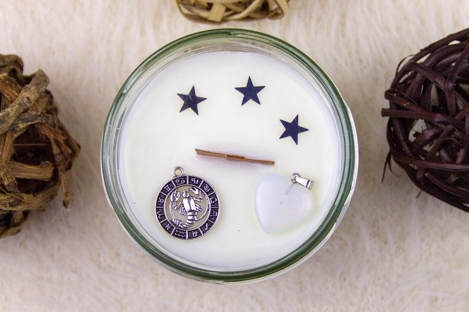 La mecha de madera que chisporrotea al encenderse añade un toque mágico a esta experiencia, transformando cada rincón en un refugio cálido y acogedor. Con un formato de 230 ml, esta vela es el compañero perfecto para sumergirte en las profundidades de las emociones y la sensibilidad de Cáncer. Además, cada vela incluye un colgante de opalita en forma de corazón, la piedra preciosa que potencia las características únicas de este signo intuitivo y compasivo. 💖🌌 Para llevar consigo la conexión astrológica, también se incluye un colgante con la forma del signo Cáncer. ♋🌟