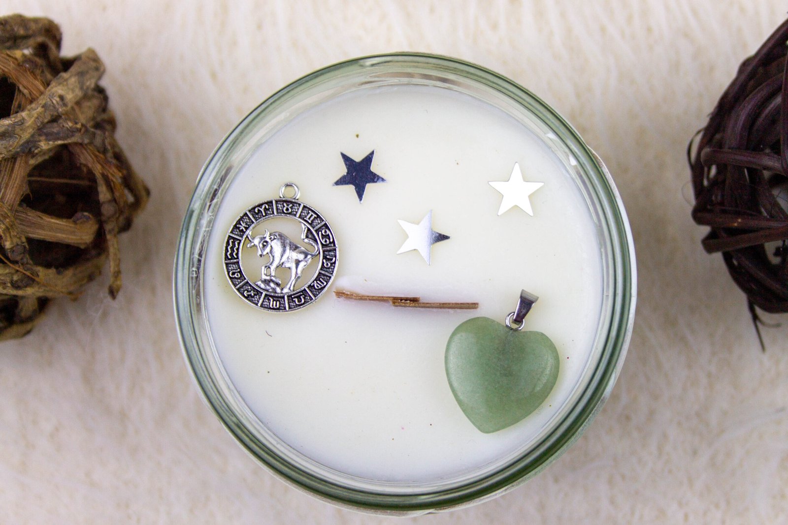 La mecha de madera que chisporrotea al encenderse añade una chispa de magia, transformando tu espacio en un refugio de calma y bienestar. Con un generoso formato de 230 ml, esta vela es la compañera perfecta para infundir tu hogar con la estabilidad y la sensualidad tan características de Tauro. Cada vela incluye un colgante de aventurina verde en forma de corazón, la piedra preciosa que potencia las cualidades únicas de este signo de tierra y determinación. 💚💖 Además, lleva un colgante con la forma del signo Tauro para que te conectes plenamente con tu identidad zodiacal. ♉🌟